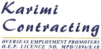 Karimi Contracting is ranked as one of the leading Manpower Consultants and Recruiting Agency in Pakistan to provide manpower from Pakistan for Middle East and Far East. Karimi Contracting have been recruiting the highest quality manpower to its precious clients based Middle East and Far East. We are licenced by the Government of Pakistan, Ministry of Labour, Manpower and Overseas Pakistanis.